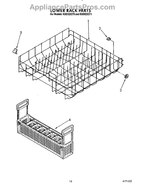 Parts for Kitchenaid KUDI22GT0: 12 - Lower Rack Parts