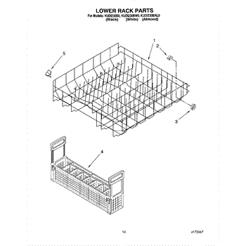 Parts for Kitchenaid KUDI230BWH0: 11 - Lower Rack Parts