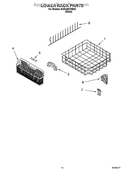 This dishrack organizes and supports dishes inside the dishwasher during wash cycles. Replacing a damaged rack restores smooth loading, keeps items upright, and helps prevent rust stains or snags from broken tines or flaking rack coating.