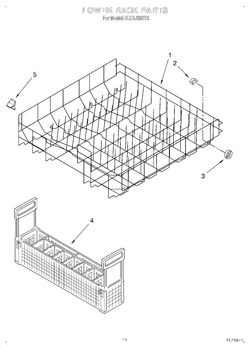 Parts for Kitchenaid KUDJ230Y2: 11 - Lower Rack Parts