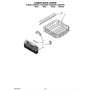 Parts for Kitchenaid KUDK03ITBS1: 11 - Lower Rack Parts, Optional Parts (Not Included) Parts