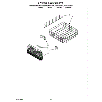 Replacement lower dishrack for dishwashers. Holds dishes, pots, and pans during wash cycles. Replace if cracked, rusted, or tines are broken or missing.