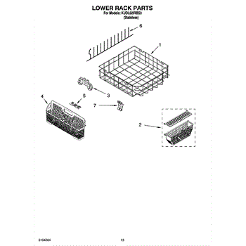 This dishrack organizes and supports dishes inside the dishwasher during wash cycles. Replacing a damaged rack restores smooth loading, keeps items upright, and helps prevent rust stains or snags from broken tines or flaking rack coating.