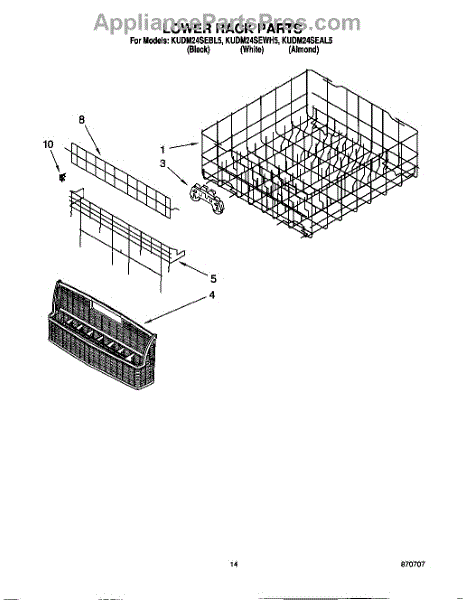 This genuine OEM part is a refrigerator upper dishrack. The upper dishrack is the tray on which dishes are placed on the top shelf of a dishwasher. If the dishrack is no longer sliding on its tracks, or is not staying in place during the wash cycle, it might need to be replaced. Luckily this is a very simple repair.To replace the upper dishrack, simply pull out the old dish rack and lift it up out of its tracks. Once removed from the dishwasher, take the new dishrack and gently slide it into place. Make sure it is placed correctly and that it is running smoothly on its tracks.This replacement part is sold individually and is compatible with Whirlpool, Maytag, KitchenAid, Jenn-Air, Amana, Magic Chef, Admiral, Norge, Roper, and Sears/Kenmore brand dishwashers.