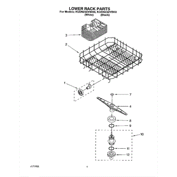Parts for Kitchenaid KUDN230YBK0: 06 - Lower Rack Parts