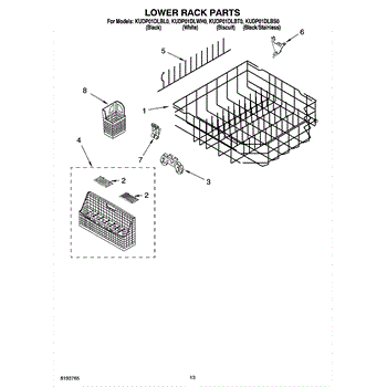 Parts for Kitchenaid KUDP01DLBL0: 10 - Lower Rack Parts