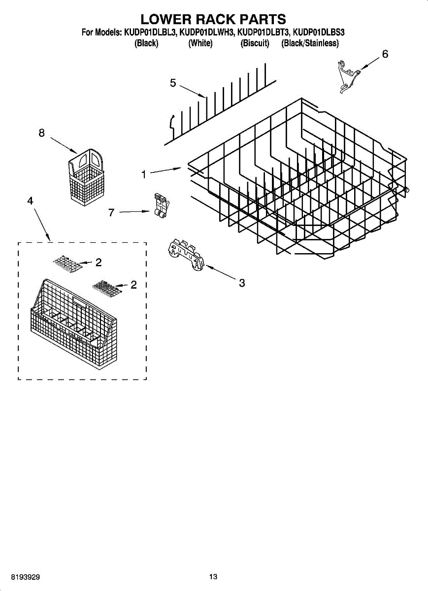 Parts for Kitchenaid KUDP01DLBL3: 10 - Lower Rack Parts