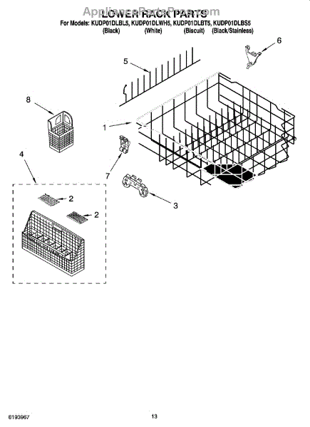 Parts for Kitchenaid KUDP01DLBS5: 10 - Lower Rack Parts