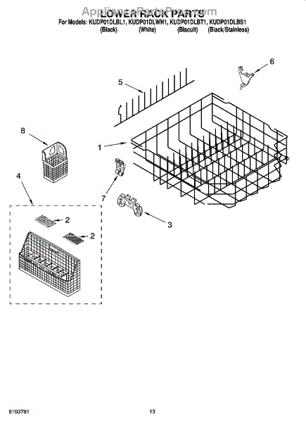 Parts for Kitchenaid KUDP01DLWH1: 10 - Lower Rack Parts