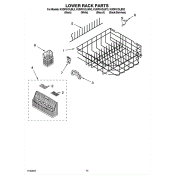 Parts for Kitchenaid KUDP01DLWH2: 10 - Lower Rack Parts