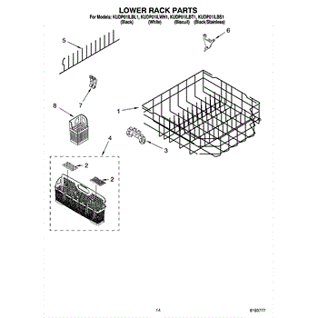 Parts for Kitchenaid KUDP01ILBS1: 11 - Lower Rack Parts