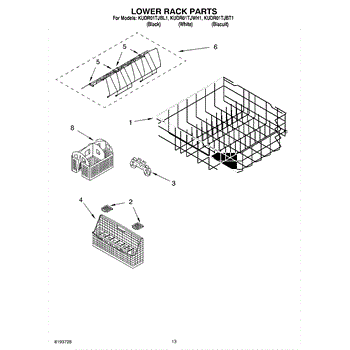 Parts for Kitchenaid KUDR01TJBL1: 10 - Lower Rack Parts