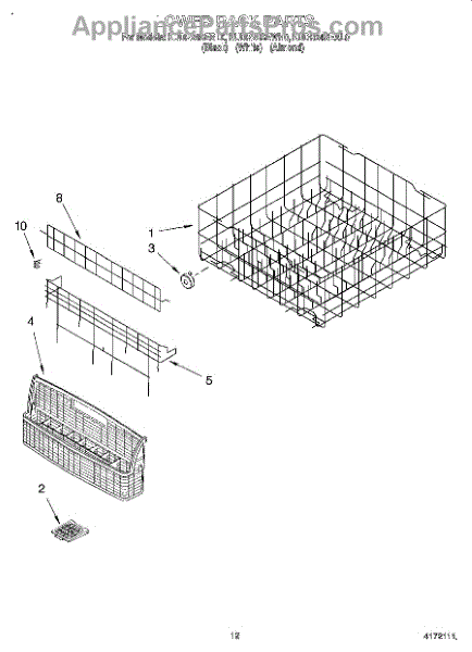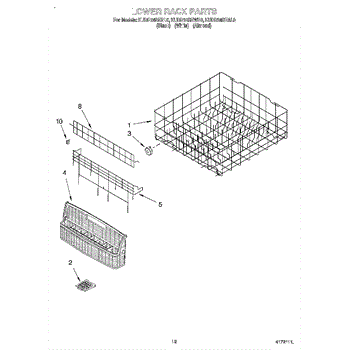 Parts for Kitchenaid KUDR24SEBL0: 10 - Lower Rack Parts