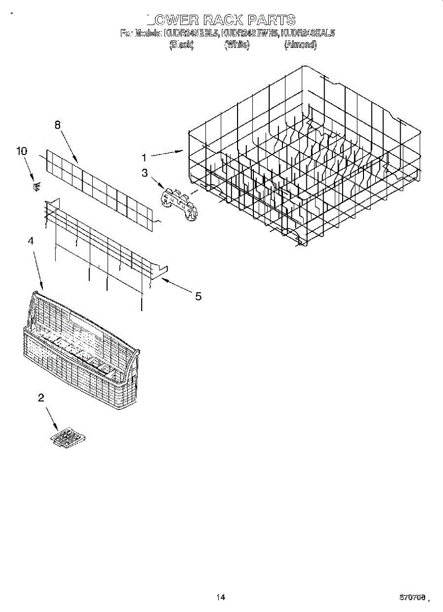 Lower dishrack assembly for dishwashers. Holds dishes during wash and dry cycles. Replace if cracked, rusted, tines broken, or missing. Includes wheels.