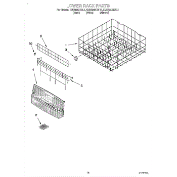 Parts for Kitchenaid KUDR24SEWH1: 11 - Lower Rack Parts