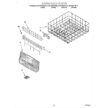 Parts for Kitchenaid KUDR25SHWH0: 11 - Lower Rack Parts
