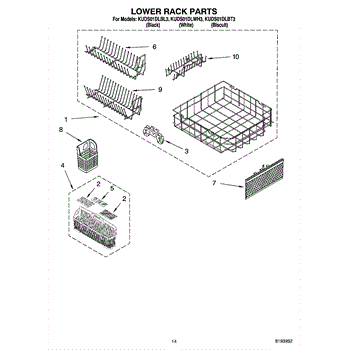 Parts for Kitchenaid KUDS01DLBL3: 11 - Lower Rack Parts