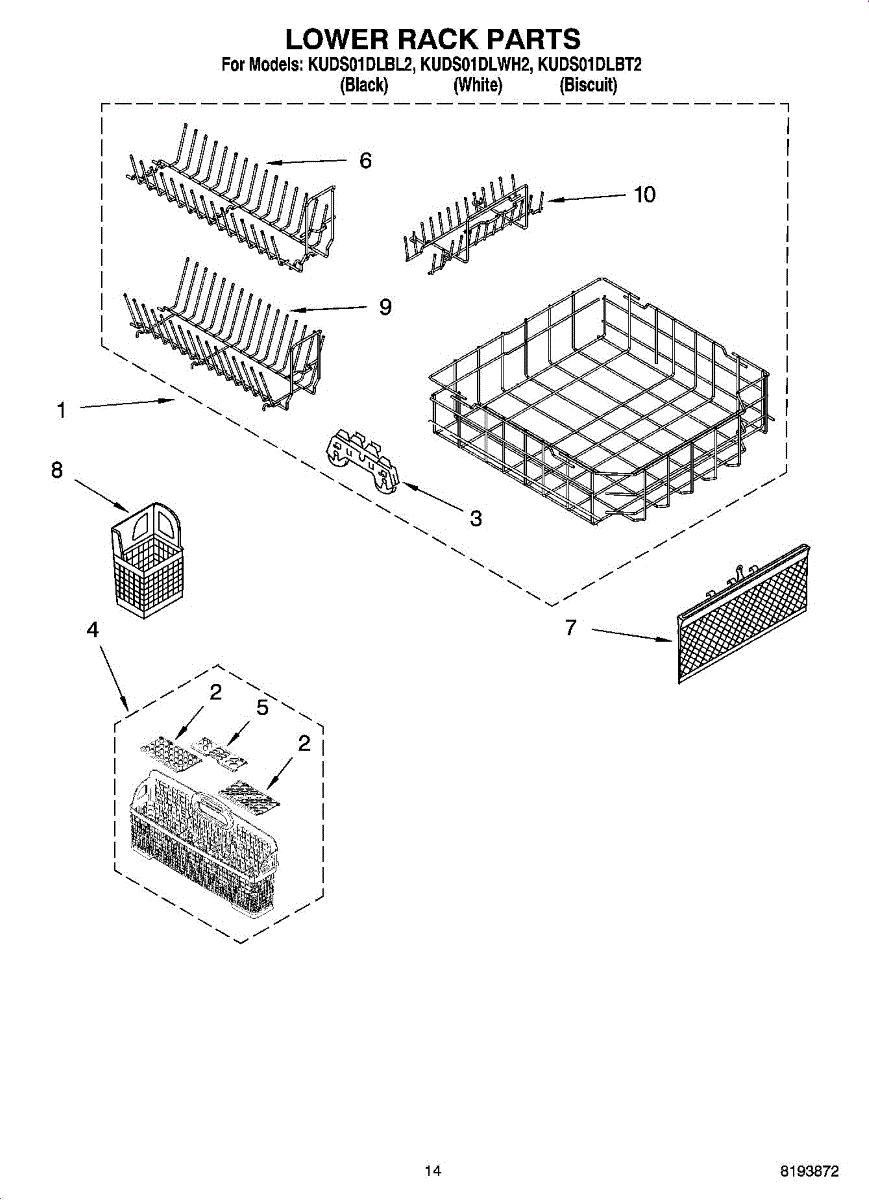 Replacement lower dishrack for dishwashers. Holds dishes, pots, and pans during wash cycles. Replace if cracked, rusted, or tines are broken or missing.