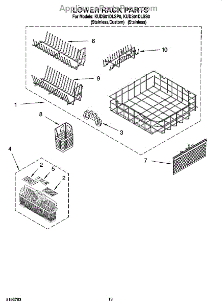 The causes for the replacement of the silverware basket can include normal wear and tear from daily use, exposure to high temperatures and aggressive cleaning chemicals, or physical damage from loading and unloading utensils.
