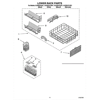 Parts for Kitchenaid KUDS01FLWH1: 11 - Lower Rack Parts