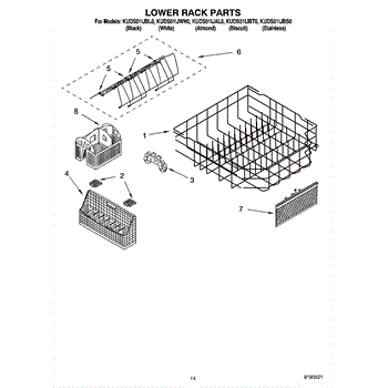 Parts for Kitchenaid KUDS01IJBT0: 11 - Lower Rack Parts