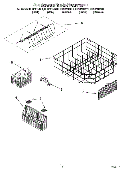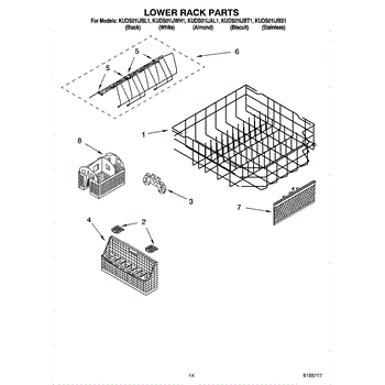 Parts for Kitchenaid KUDS01IJBT1: 11 - Lower Rack Parts
