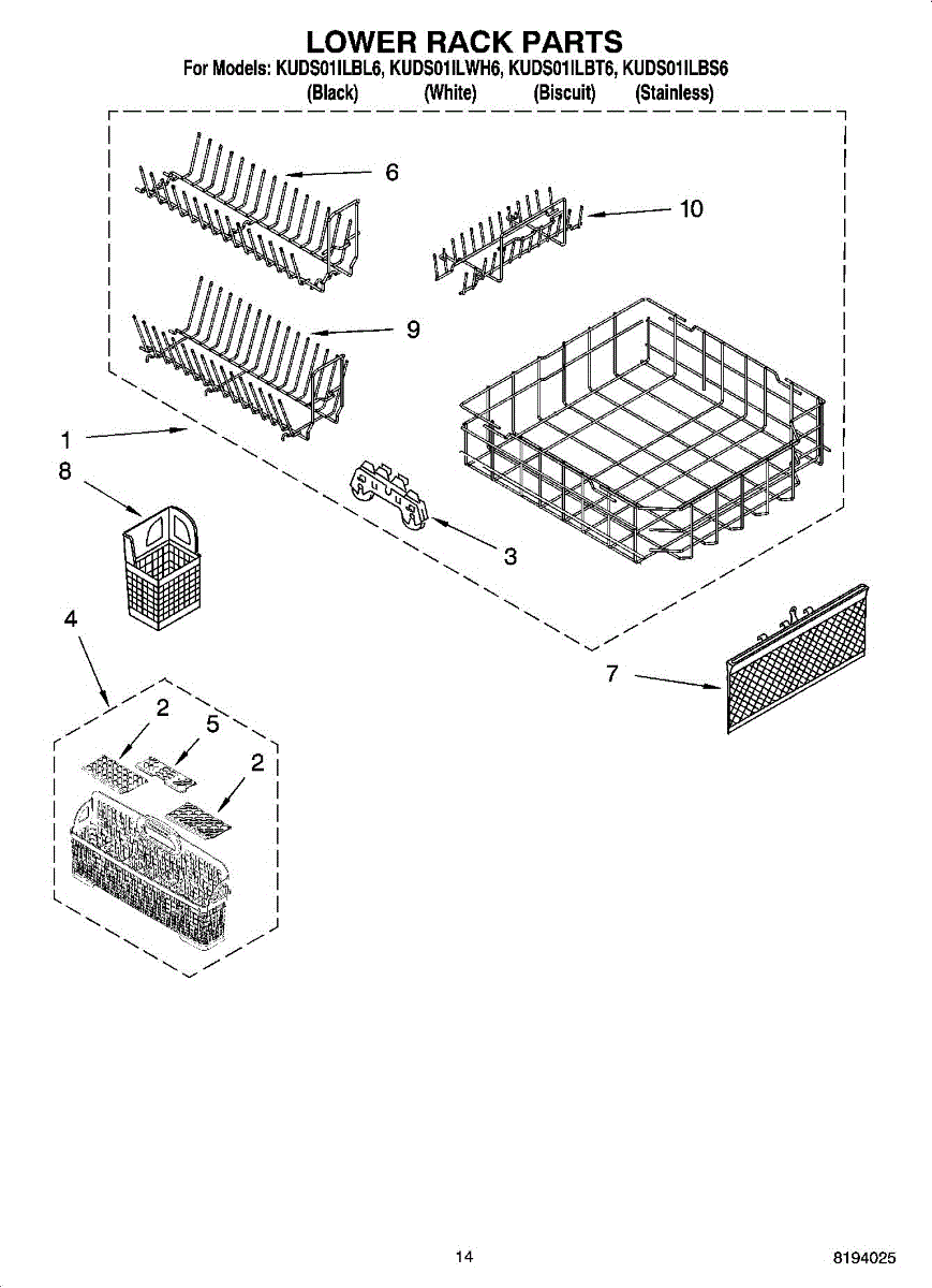 Replacement lower dishrack for dishwashers. Holds dishes, pots, and pans during wash cycles. Replace if cracked, rusted, or tines are broken or missing.