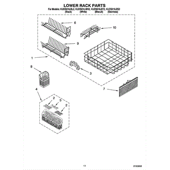 Parts for Kitchenaid KUDS01ILWH2: 11 - Lower Rack Parts