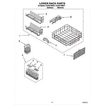 Replacement lower dishrack for dishwashers. Holds dishes, pots, and pans during wash cycles. Replace if cracked, rusted, or tines are broken or missing.