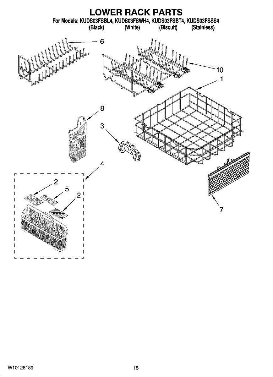 Parts for Kitchenaid KUDS03FSBT4: 12 - Lower Rack Parts, Optional Parts (Not Included) Parts