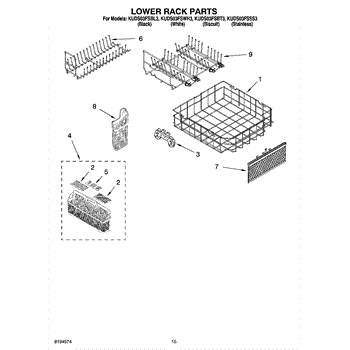 Parts for Kitchenaid KUDS03FSSS3: 12 - Lower Rack Parts, Optional Parts (Not Included) Parts