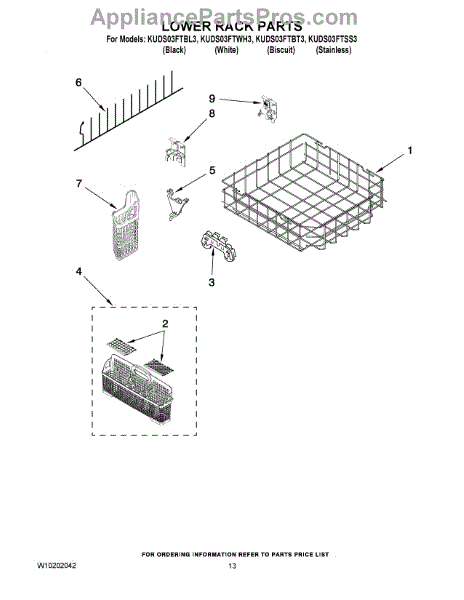 Parts for Kitchenaid KUDS03FTBL3: 10 - Lower Rack Parts