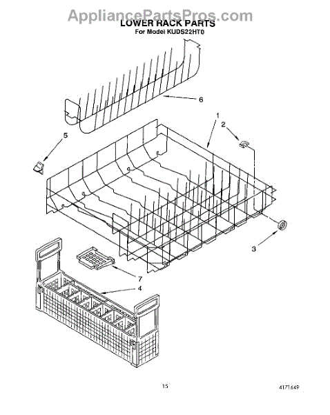 Parts for Kitchenaid KUDS22HT0: 12 - Lower Rack Parts