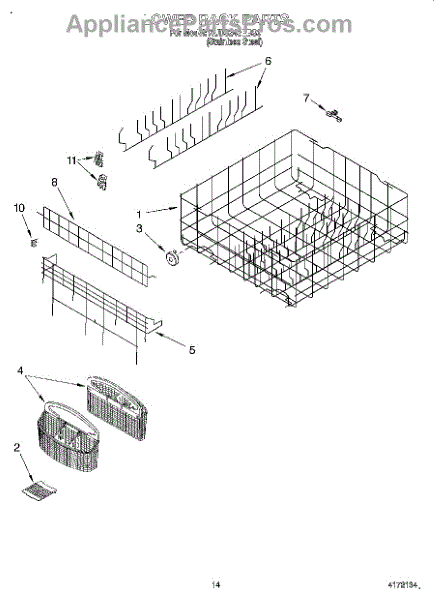 Parts for Kitchenaid KUDS24SEBS0: 11 - Lower Rack Parts