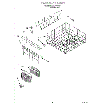 Parts for Kitchenaid KUDS24SEBS3: 11 - Lower Rack Parts