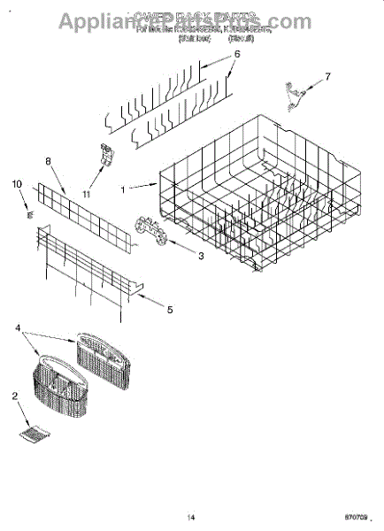 Parts for Kitchenaid KUDS24SEBT5: 11 - Lower Rack Parts