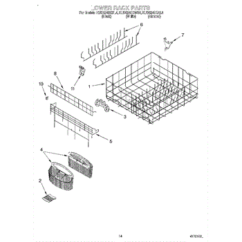 Parts for Kitchenaid KUDS24SEWH4: 11 - Lower Rack Parts
