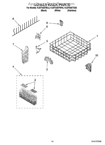 Parts for Kitchenaid KUDT03STBL0: 11 - Lower Rack Parts