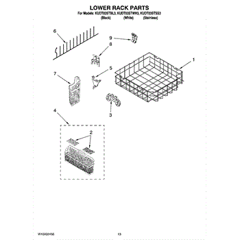 Parts for Kitchenaid KUDT03STWH3: 10 - Lower Rack Parts
