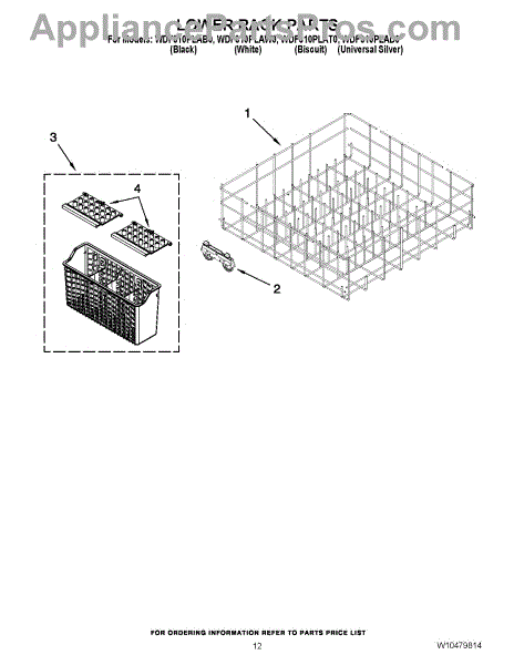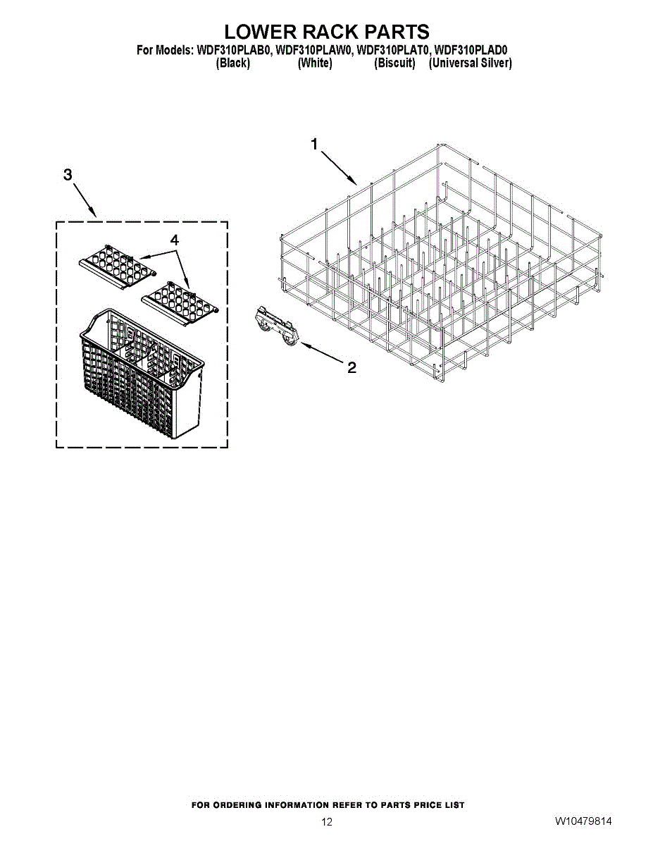 Parts for Whirlpool WDF310PLAB0: 10 - Lower Rack Parts