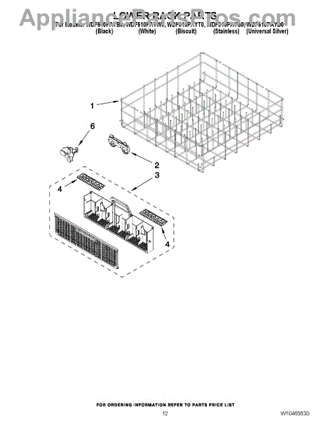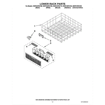 Parts for Whirlpool WDF510PAYW0: 10 - Lower Rack Parts