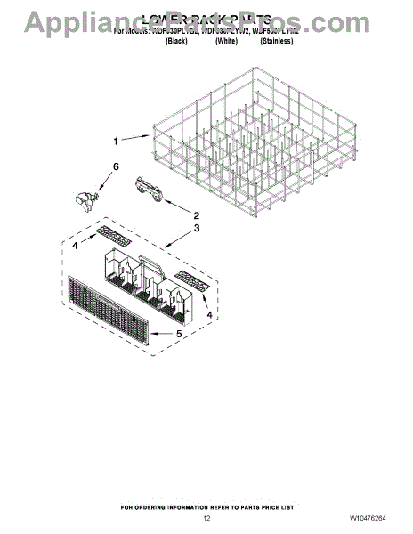 Parts for Whirlpool WDF530PLYW2: 10 - Lower Rack Parts