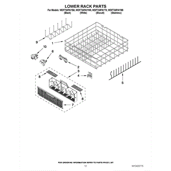 Parts for Whirlpool WDF730PAYB0: 10 - Lower Rack Parts