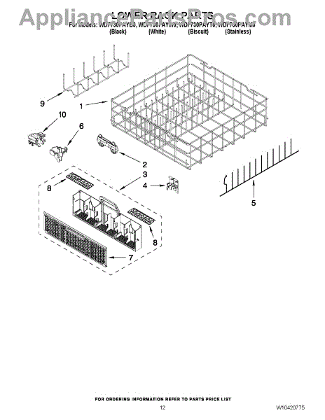 Parts for Whirlpool WDF730PAYM0: 10 - Lower Rack Parts