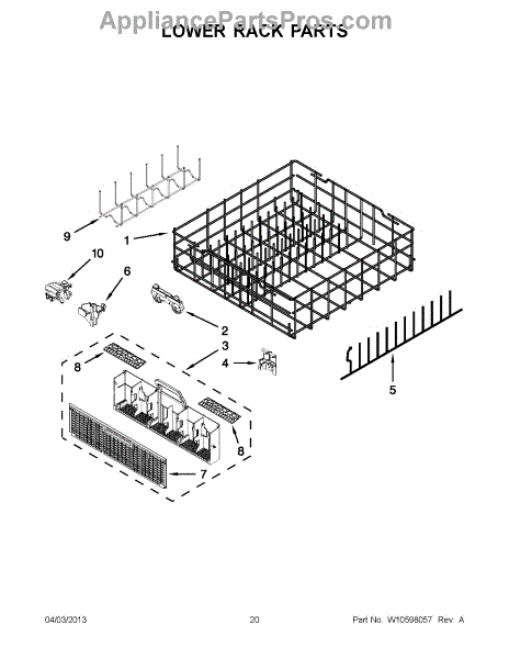 Parts for Whirlpool WDF730PAYM5: 10 - Lower Rack Parts