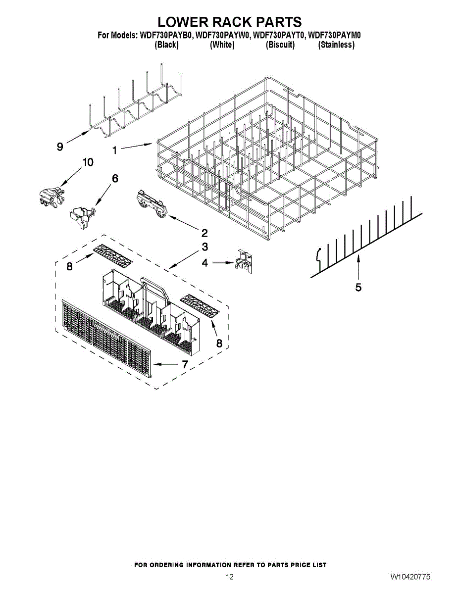 Parts for Whirlpool WDF730PAYW0: 10 - Lower Rack Parts