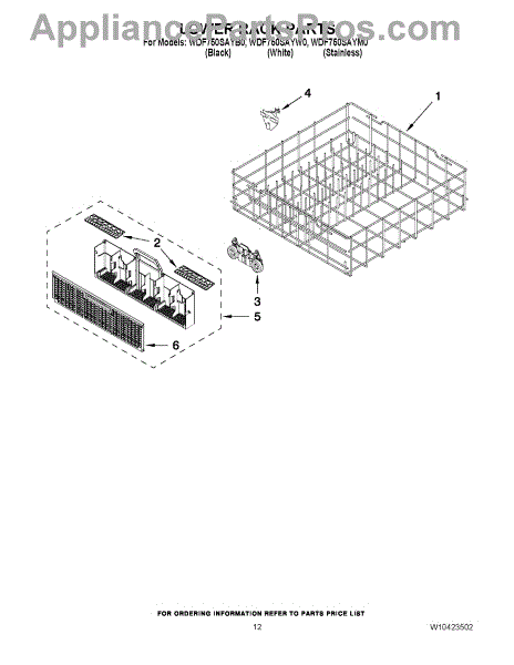 Parts for Whirlpool WDF750SAYM0: 10 - Lower Rack Parts