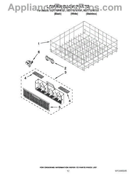 Parts for Whirlpool WDT710PAYB1: 10 - Lower Rack Parts