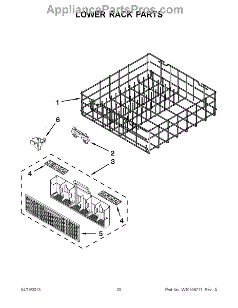 The Lower Dishwasher Rack Assembly is an OEM part for Whirlpool dishwashers. This part holds and organizes dishes, pots, and pans in the lower section of the dishwasher, ensuring they are properly positioned for effective cleaning.