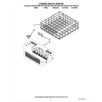 Parts for Whirlpool WDT710PAYM2: 10 - Lower Rack Parts